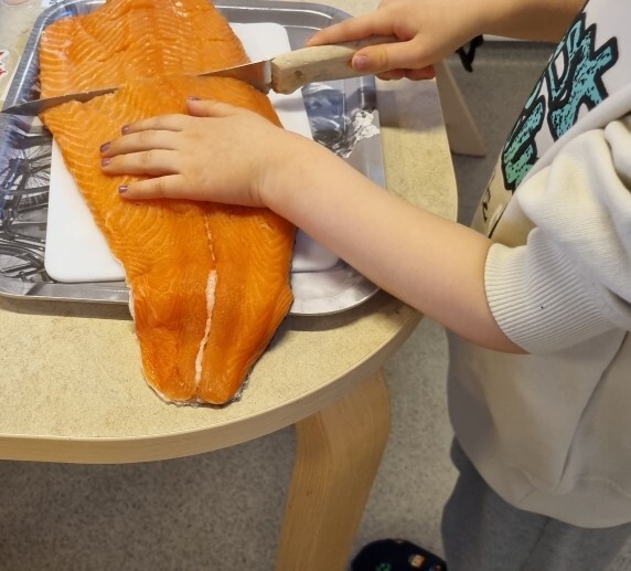 Ramsund barnehage har planlagt et eget matlagingsprosjekt etter påske. Det er førskolebarna som skal tilberede laksen til resten av barna og de ansatte. Dette gleder de seg til!